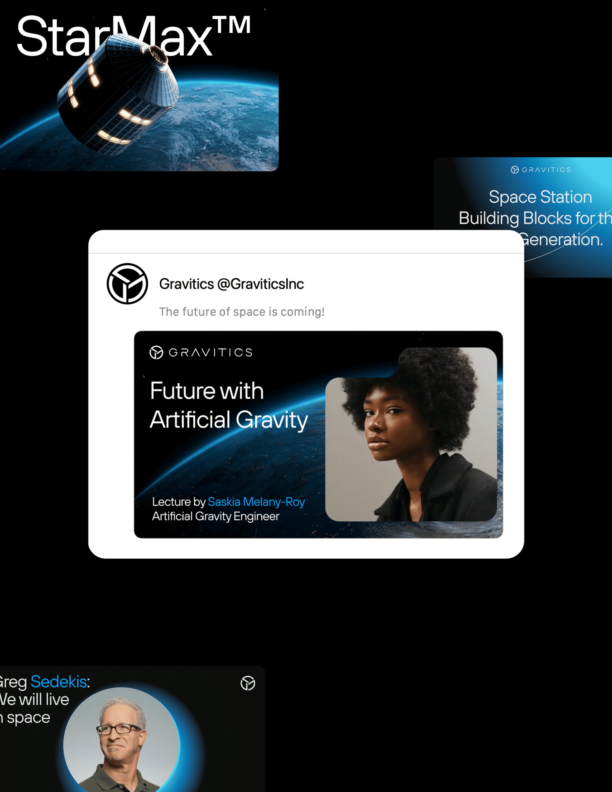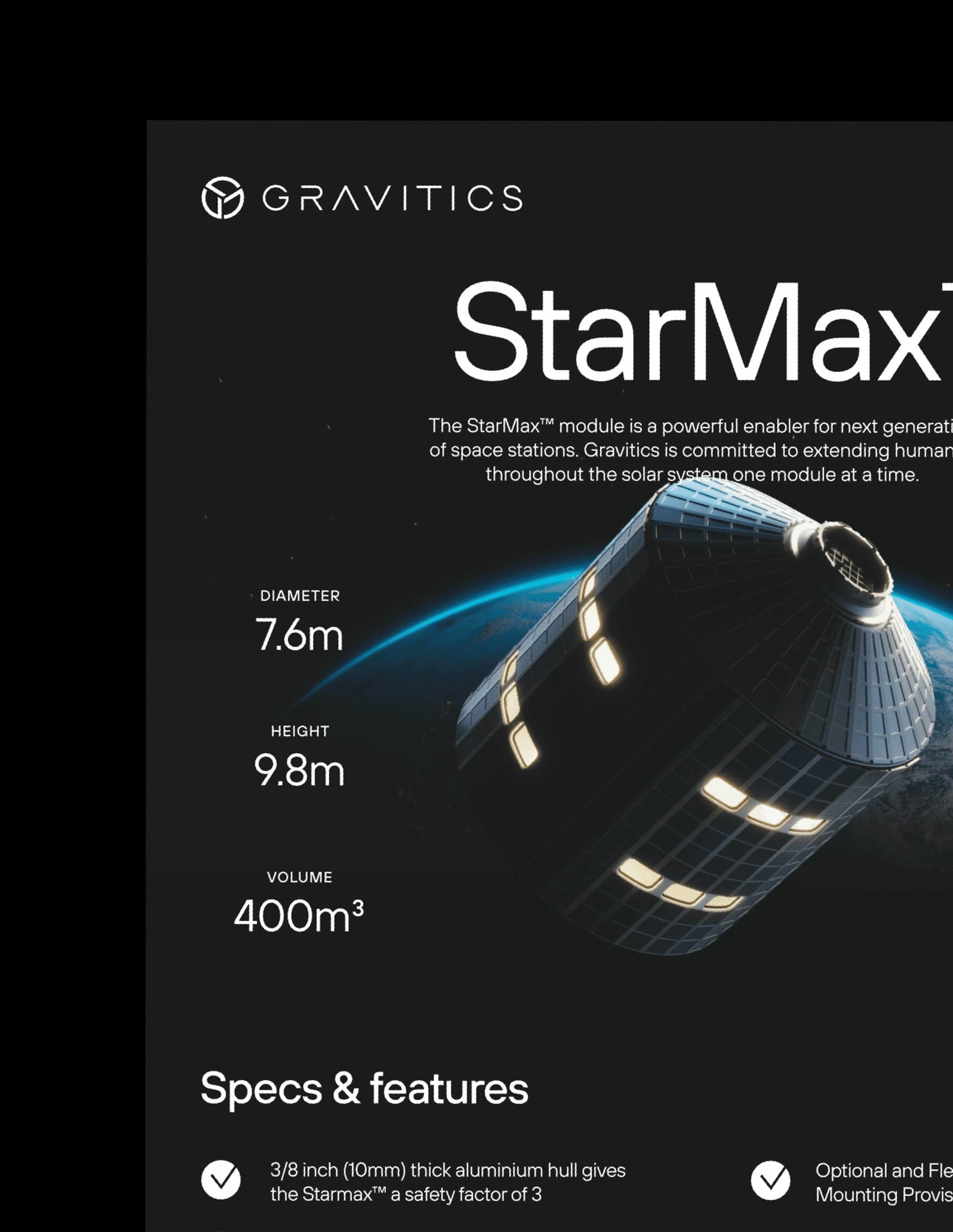 Gravitics is a leading innovator in space infrastructure. It was founded to develop modules for commercial space stations. We helped to bring their vision to reality by creating a technical, yet aspirational and futuristic visual identity.