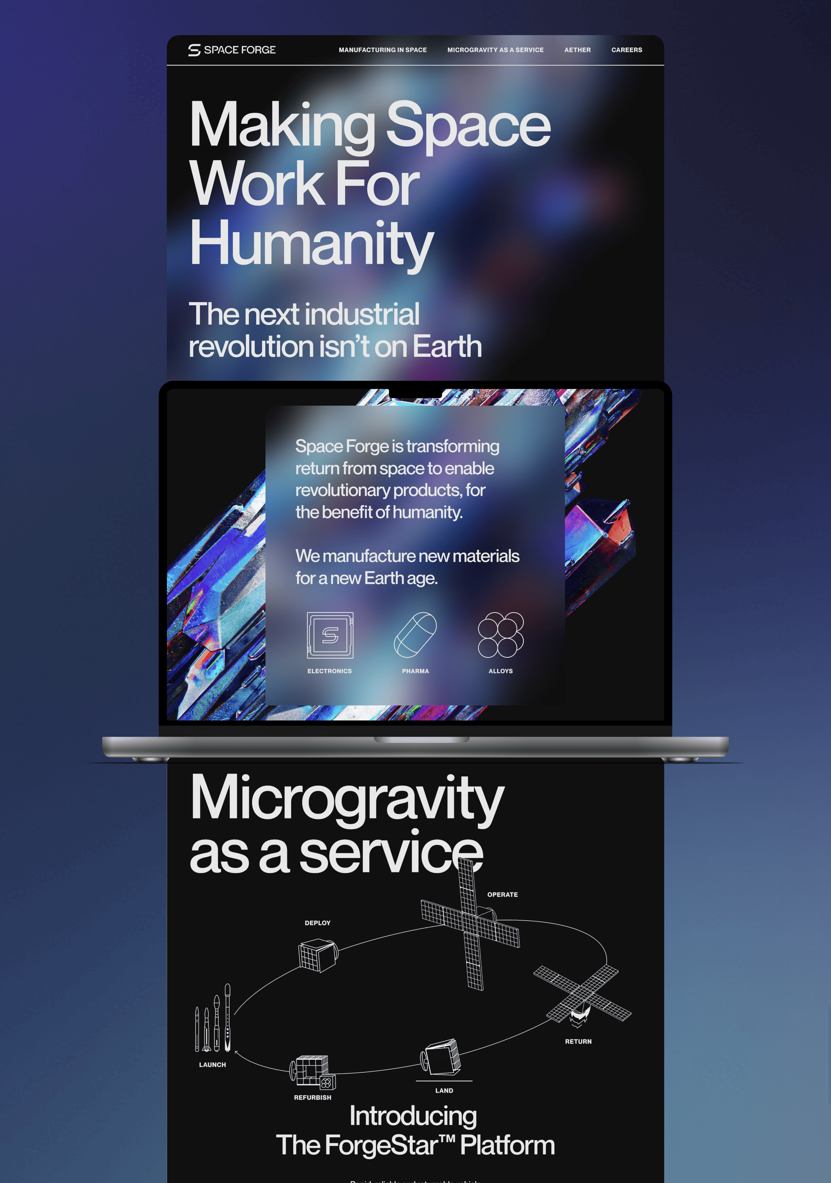 Space Forge is a pioneering company on a mission to revolutionize manufacturing by taking it beyond Earth’s atmosphere. By leveraging the unique environment of space—microgravity, vacuum, and extreme temperatures—they aim to unlock new possibilities for material science and industrial innovation. Their vision is bold: to create a new era of sustainable, high-performance materials that can only be forged off-planet, and to bring them back to Earth for transformative applications in technology, medicine, and energy. They can make space work for humanity. And we made that mission visual.